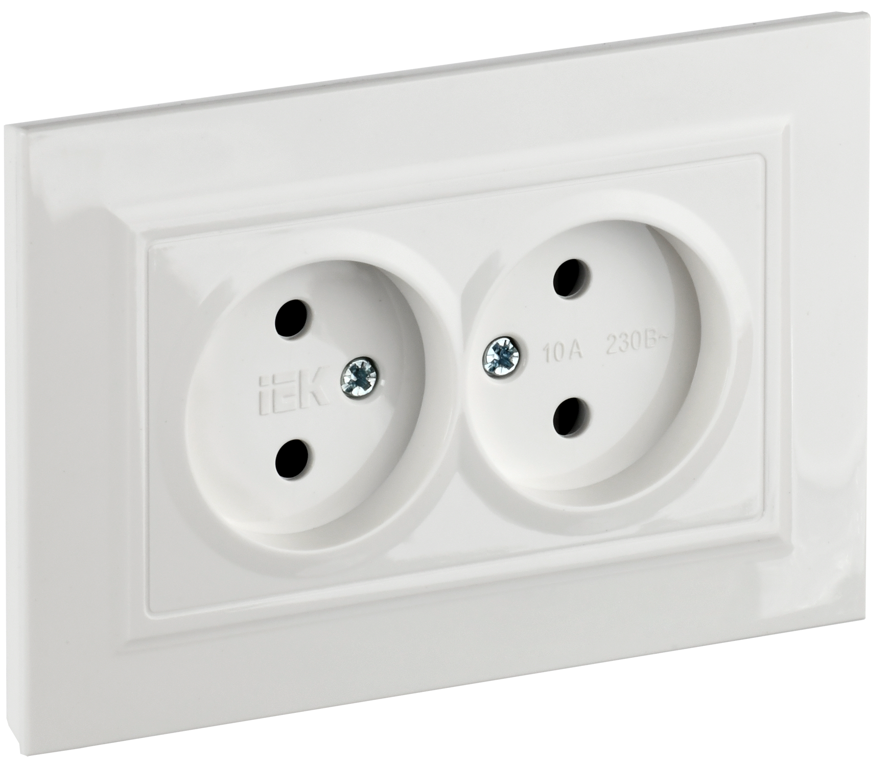 Наименование: BRITE Розетка 2-местная без заземления с защитными шторками 10А в сборе РСш12-2-БрБ белый IEK