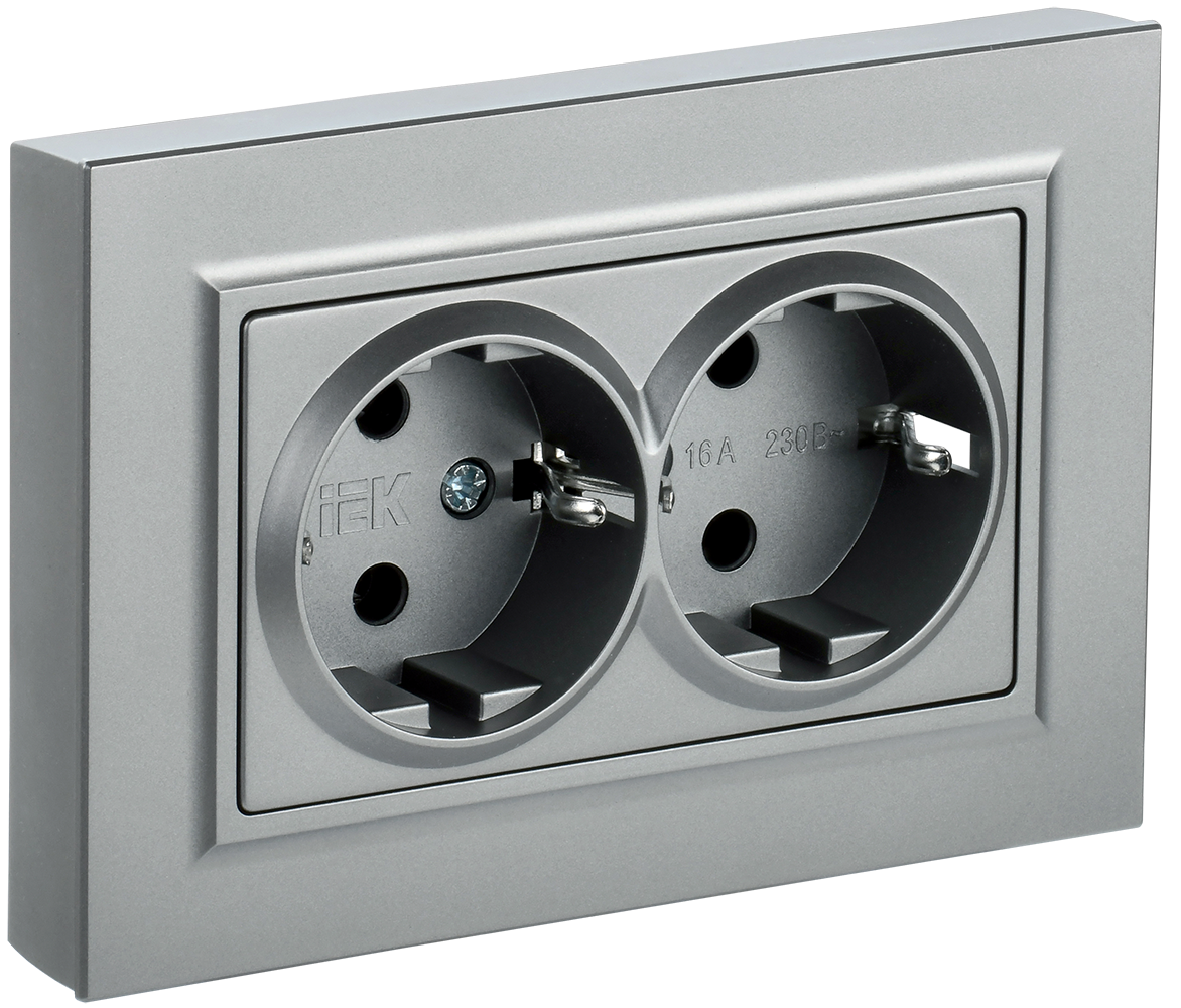 Наименование: BRITE Розетка 2-местная с заземлением с защитными шторками 16А в сборе РСш12-3-БрА алюминий IEK