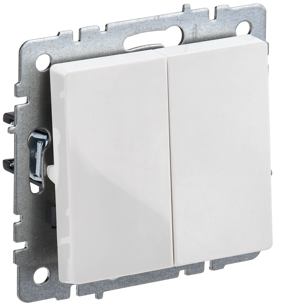 Наименование: BRITE Выключатель 2-клавишный проходной 10А ВС10-2-6-БрБ белый IEK