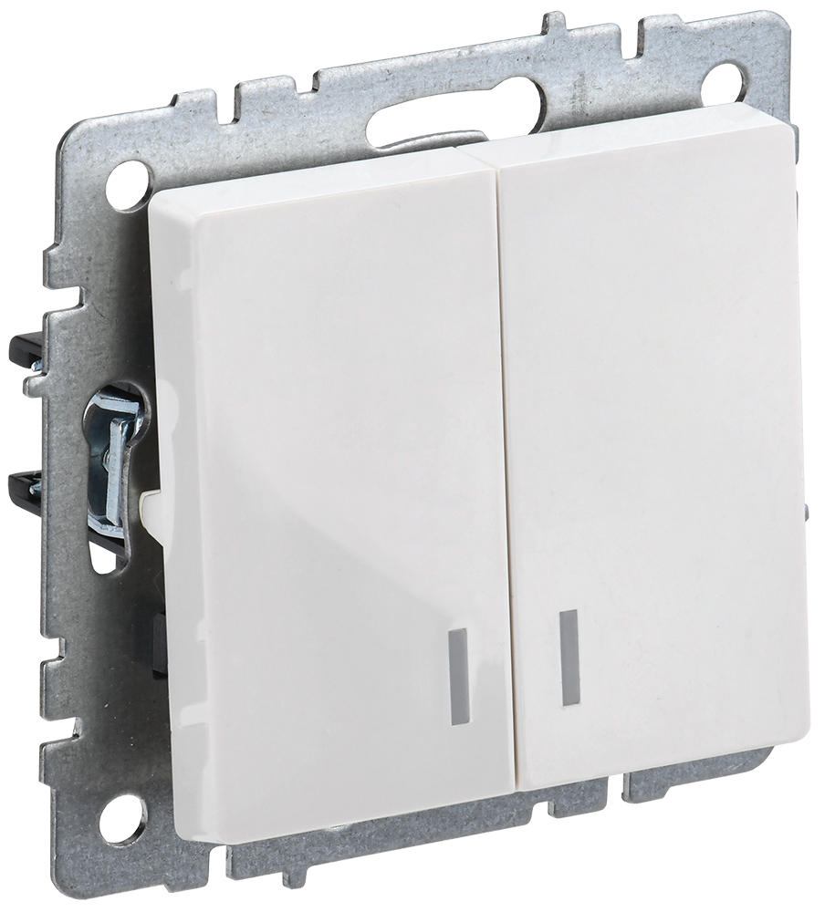 Наименование: BRITE Выключатель 2-клавишный с индикацией 10А ВС10-2-1-БрБ белый IEK