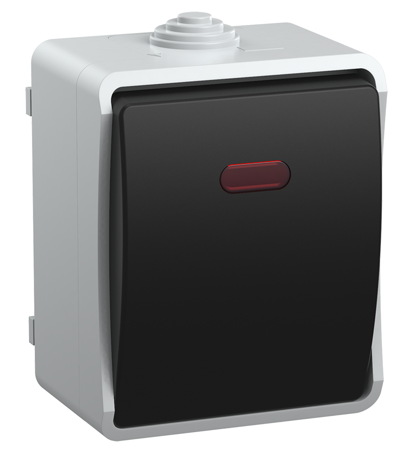 Наименование: ФОРС Выключатель 1-клавишный проходной с индикацией для открытой установки 10А IP54 ВС20-1-1-ФСр серый IEK