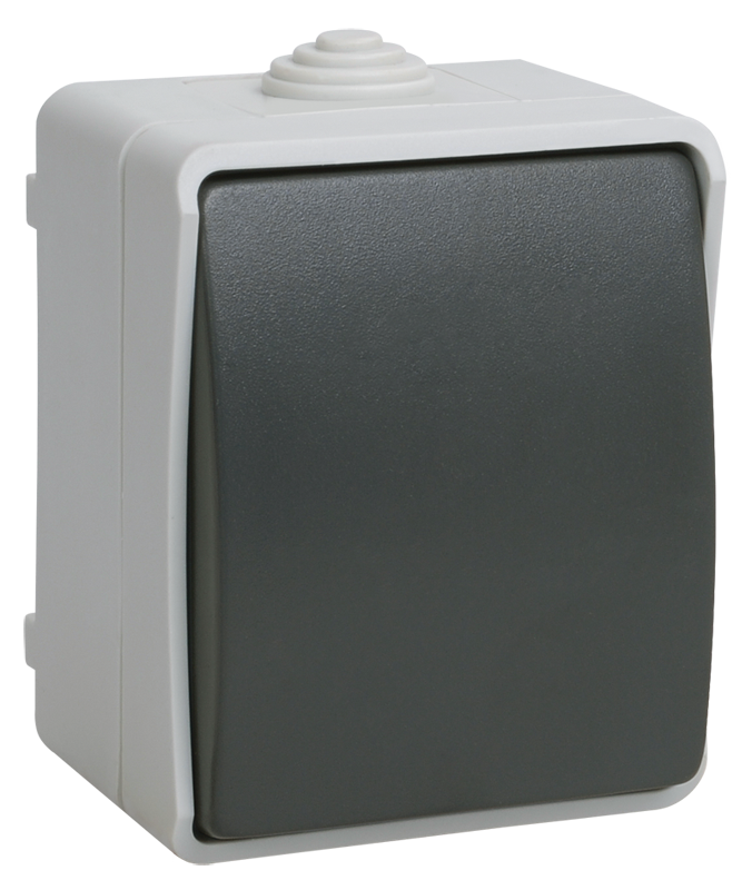 Наименование: ФОРС Выключатель кнопочный для открытой установки 10А IP54 ВСк20-1-0-ФСр серый IEK