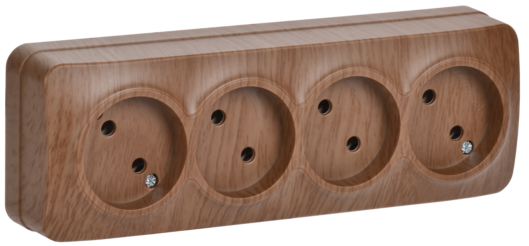 Наименование: Розетка четырехместная для открытой установки РС24-2-ХД без заземления 10А GLORY дуб IEK