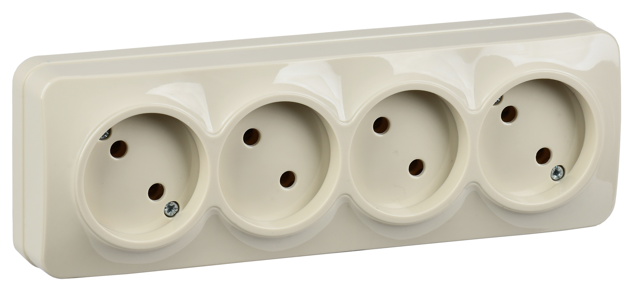Наименование: Розетка четырехместная для открытой установки РС24-2-ХК без заземления 10А GLORY кремовый IEK
