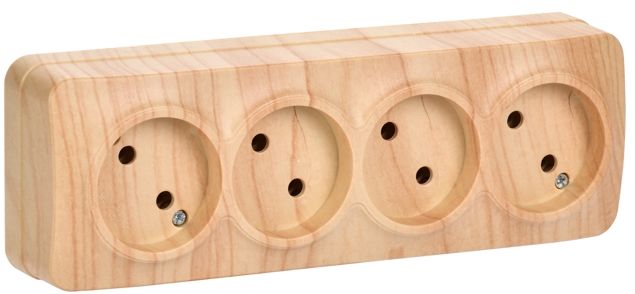 Наименование: Розетка четырехместная для открытой установки РС24-2-ХС без заземления 10А GLORY сосна IEK