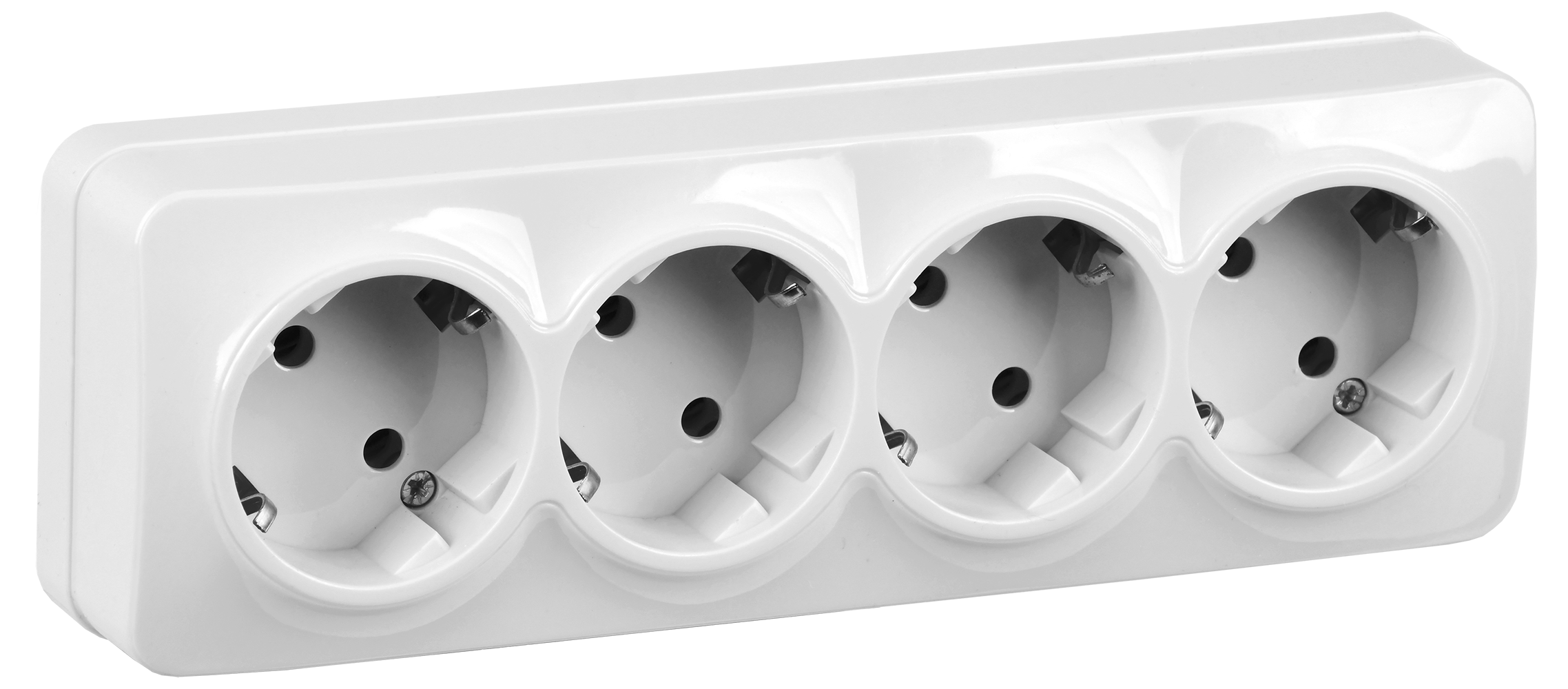 Наименование: Розетка четырехместная для открытой установки РС24-3-ХБ с заземлением 16А GLORY белый IEK