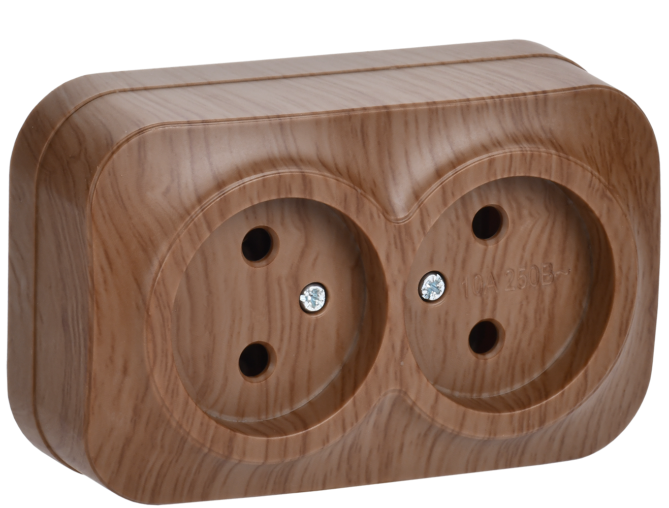 Наименование: Розетка двухместная для открытой установки РС22-2-ХД без заземления 10А GLORY дуб IEK