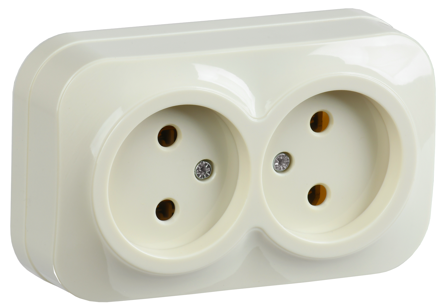 Наименование: Розетка двухместная для открытой установки РС22-2-ХК без заземления 10А GLORY кремовый IEK