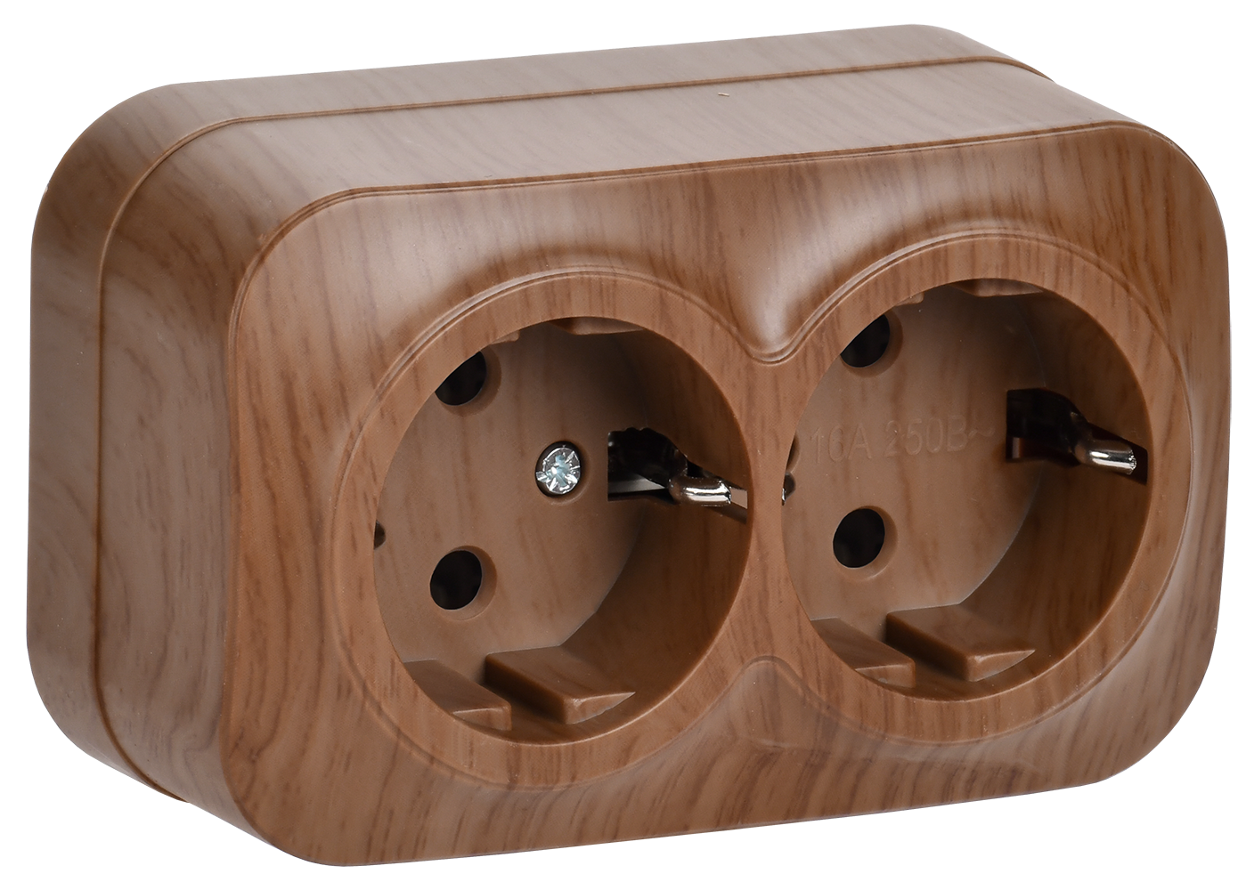 Наименование: Розетка двухместная для открытой установки РС22-3-ХД с заземлением 16А GLORY дуб IEK