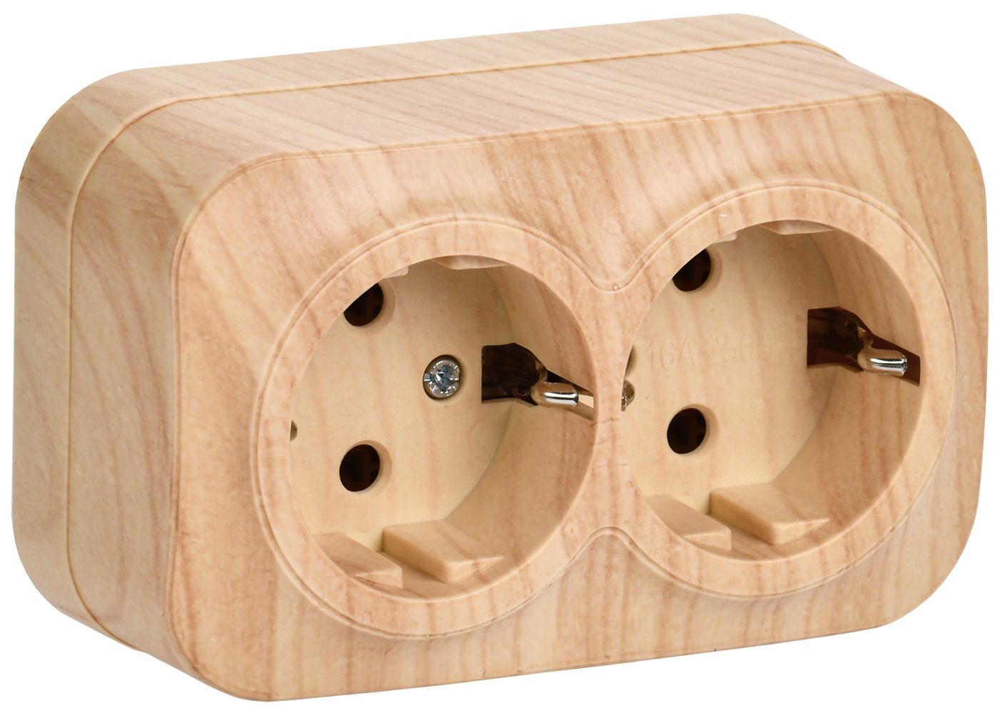 Наименование: Розетка двухместная для открытой установки РС22-3-ХС с заземлением 16А GLORY сосна IEK
