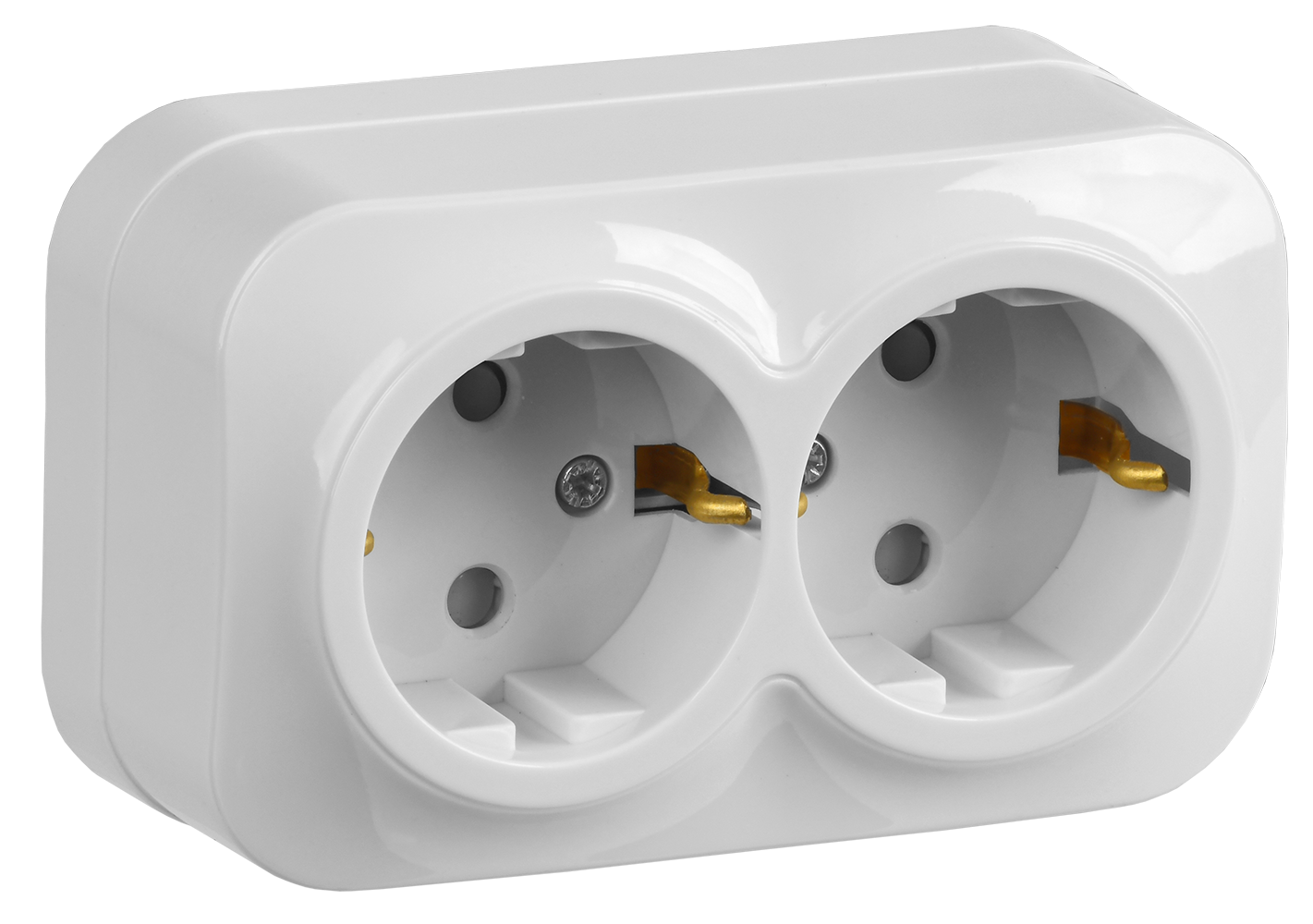 Наименование: Розетка двухместная для открытой установки РСш22-3-ХБ с заземлением и защитной шторкой 16А GLORY белый IEK