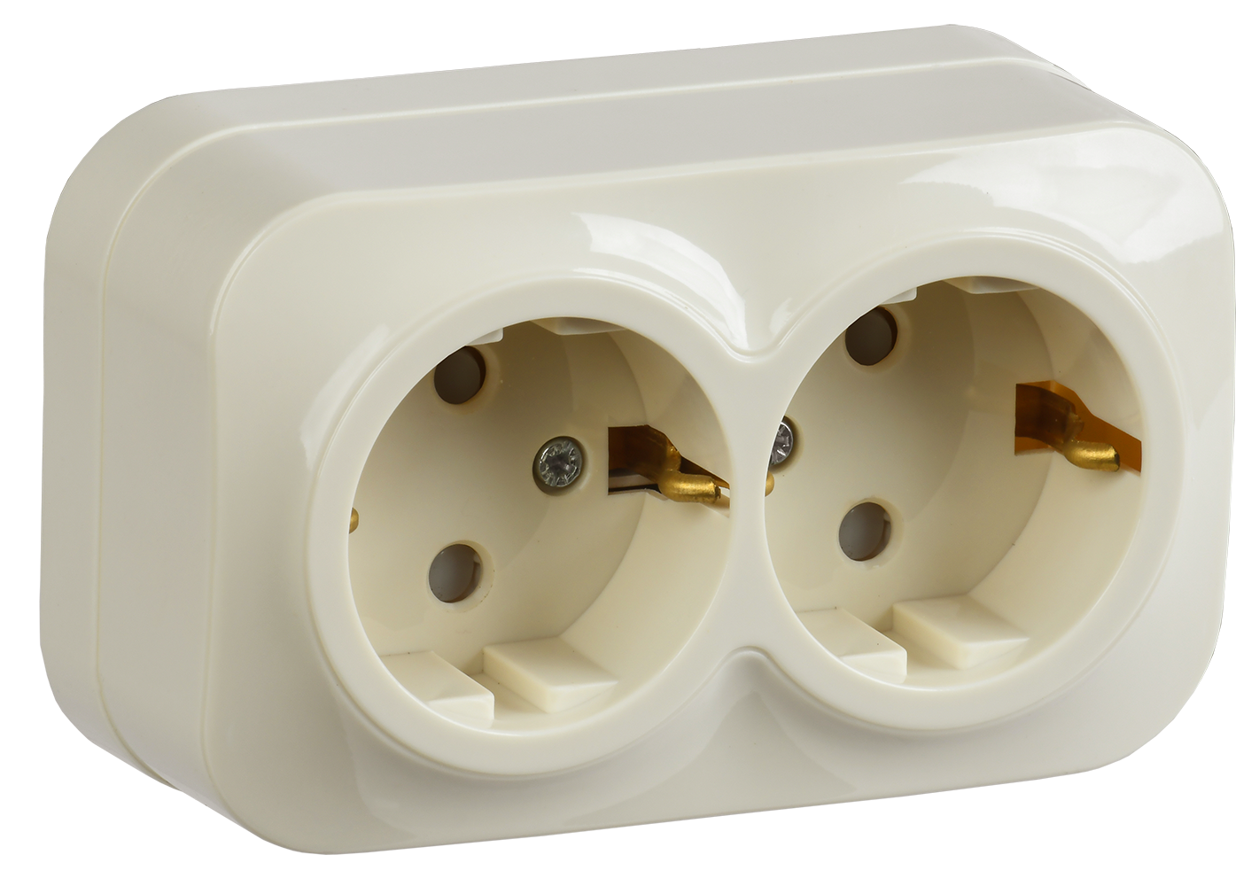 Наименование: Розетка двухместная для открытой установки РСш22-3-ХК с заземлением и защитной шторкой 16А GLORY кремовый IEK
