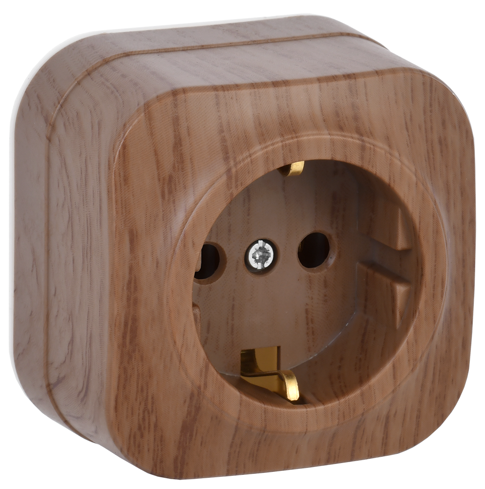 Наименование: Розетка одноместная для открытой установки РС20-3-ХД с заземлением 16А GLORY дуб IEK