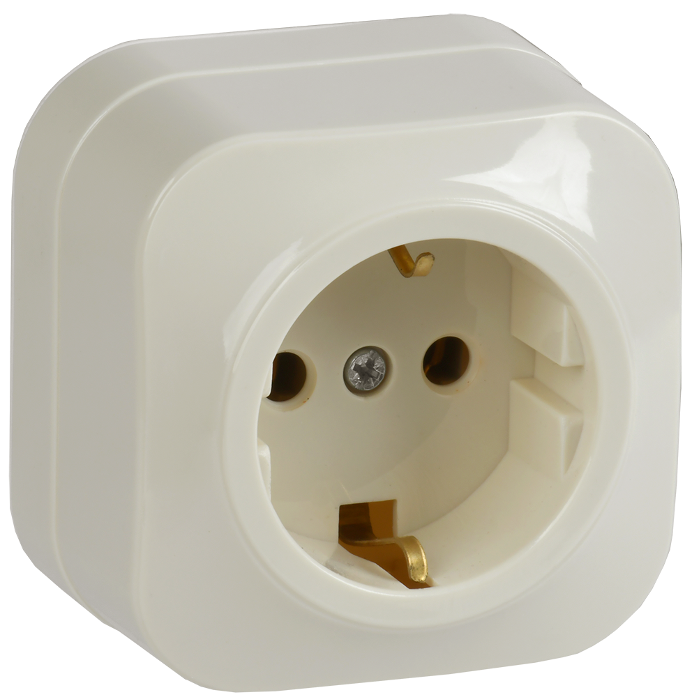 Наименование: Розетка одноместная для открытой установки РС20-3-ХК с заземлением 16А GLORY кремовый IEK