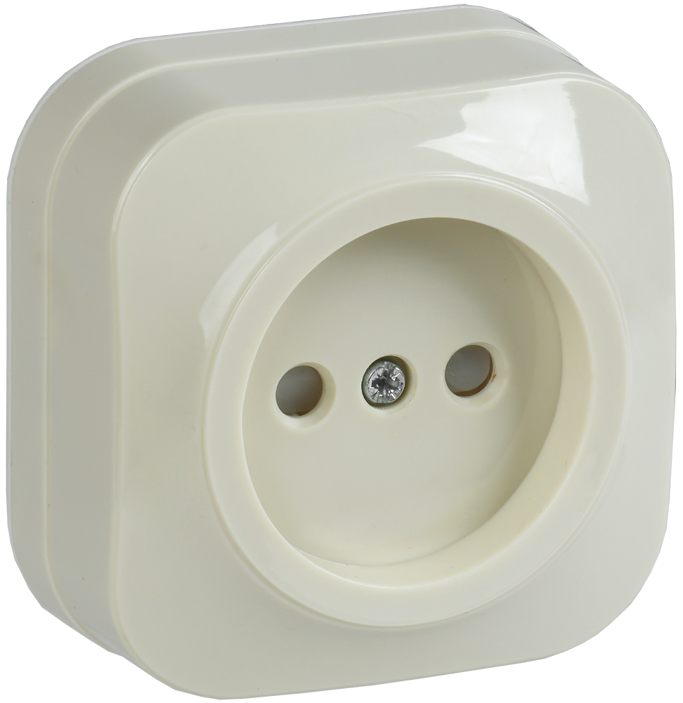 Наименование: Розетка одноместная для открытой установки РСш20-2-ХК без заземления с защитной шторкой 10А GLORY кремовый IEK