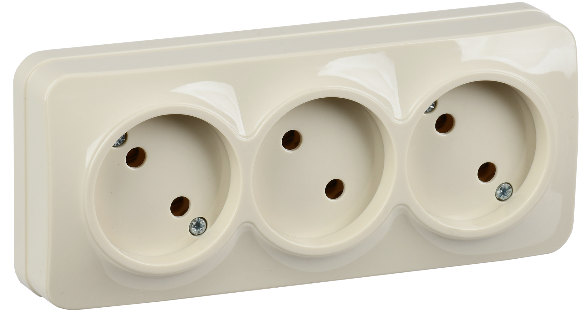 Наименование: Розетка трехместная для открытой установки РС23-2-ХК без заземления 10А GLORY кремовый IEK