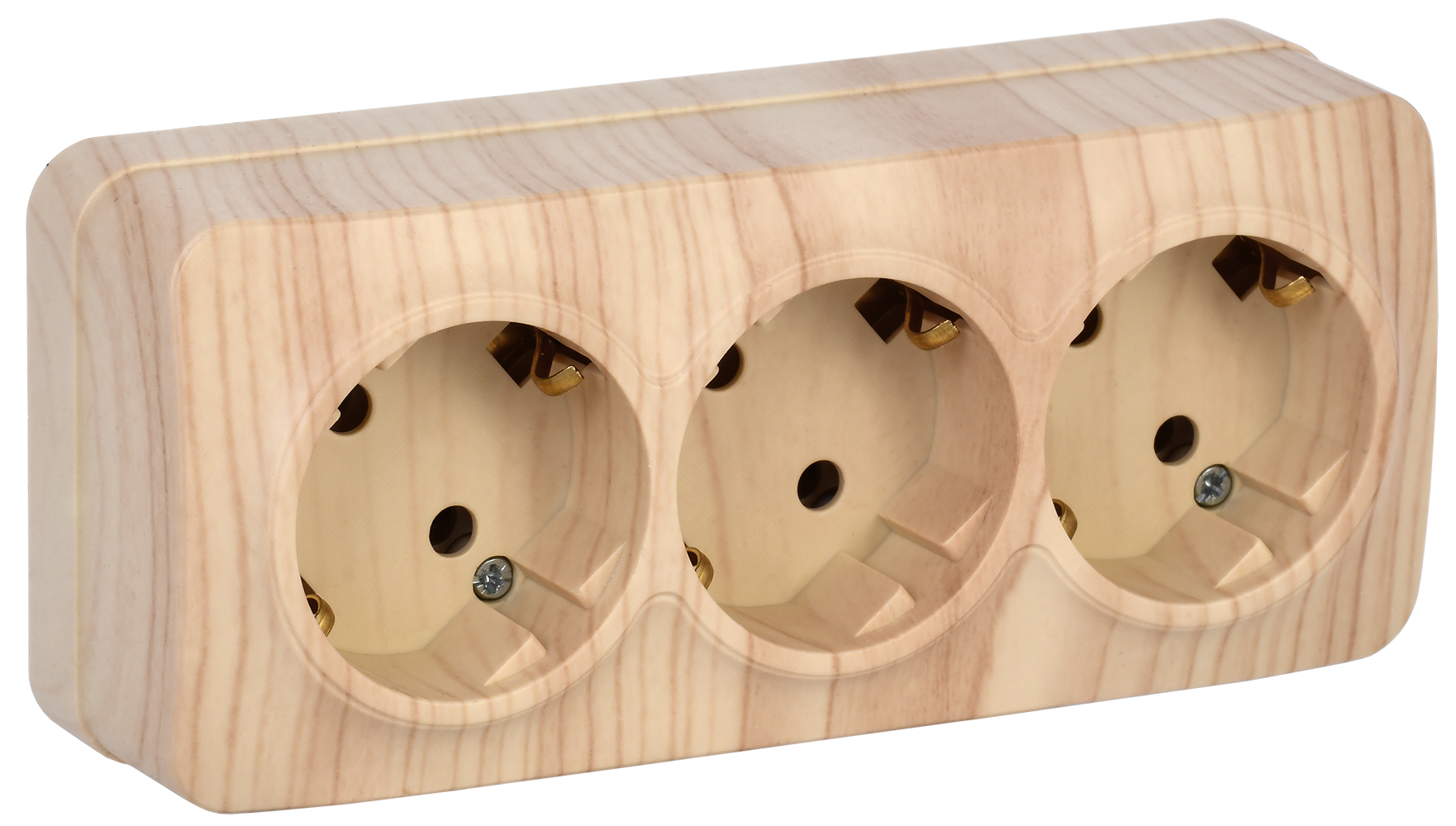 Наименование: Розетка трехместная для открытой установки РС23-3-ХС с заземлением 16А GLORY сосна IEK