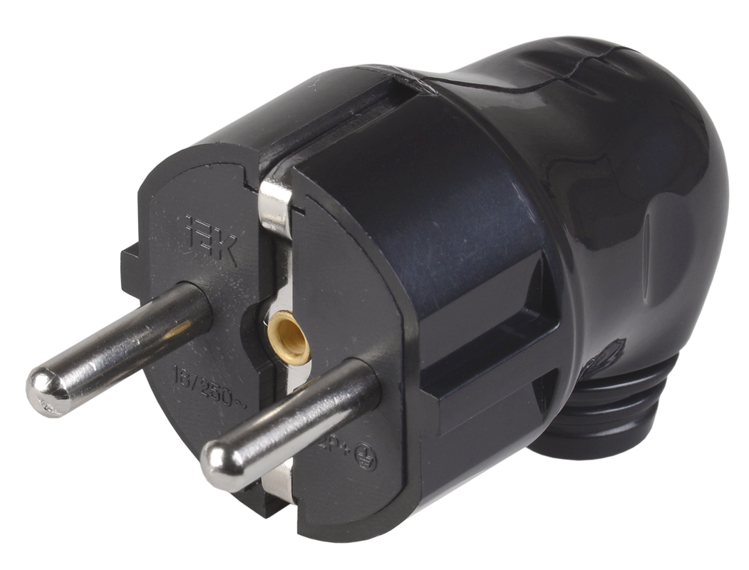 Наименование: Вилка разборная угловая ВПу11-02-Ст с заземляющим контактом 16А черная IEK
