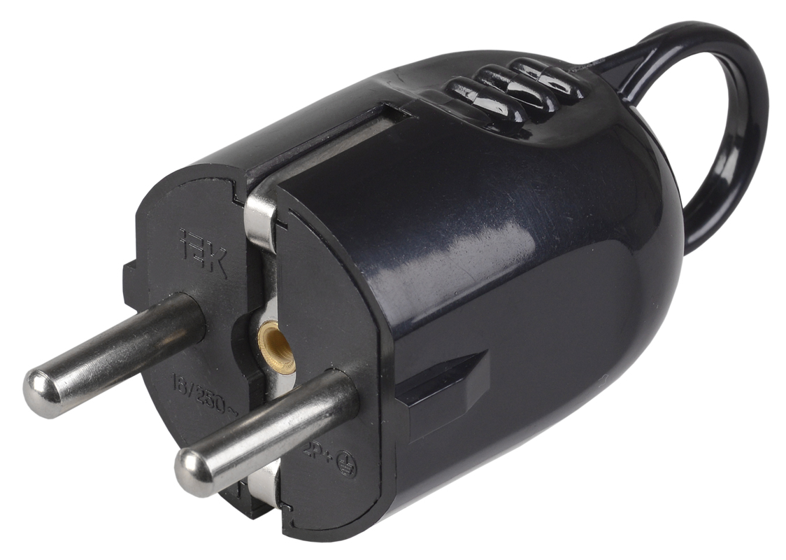 Наименование: Вилка разборная угловая ВПу12-02-Ст с заземляющим контактом с кольцом 16А черная IEK