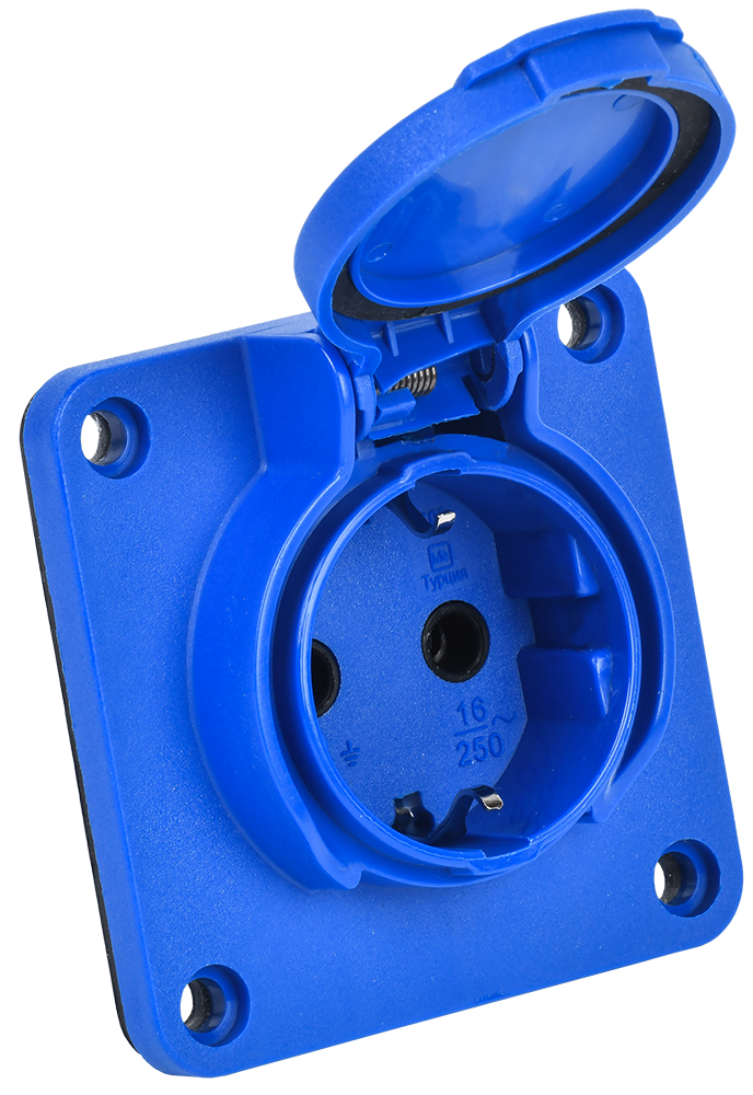 Наименование: MAGNUM Розетка панельная SCHUKO РП17-3 с увеличенным фланцем IP54 синий IEK