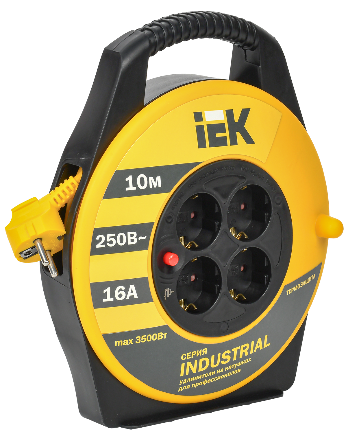 Наименование: Катушка УК10 с термозащитой 4 места 2P+PE/10м 3х1,5мм2 INDUSTRIAL IEK