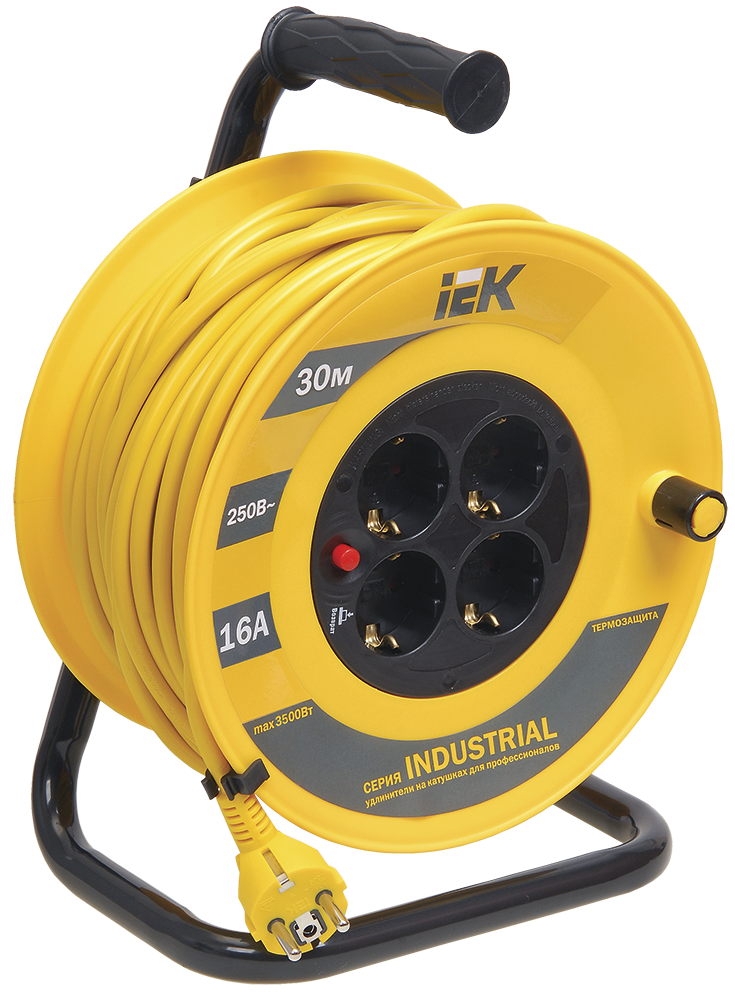 Наименование: Катушка УК30 с термозащитой 4 места 2P+PE/30м 3х1,5мм2 INDUSTRIAL IEK