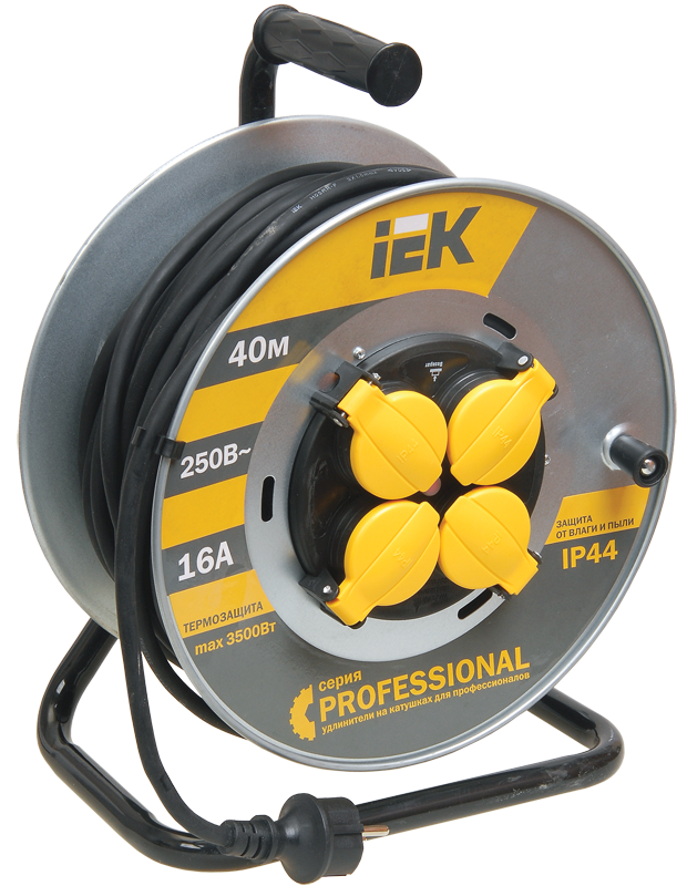 Наименование: Катушка УК40 на мет. с термозащитой 4 места 2P+PE/40м КГ 3х2,5мм2 IP44 PROFESSIONAL IEK