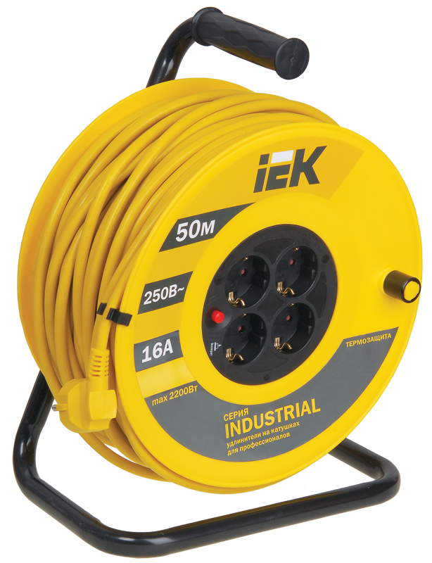 Наименование: Катушка УК50 с термозащитой 4 места 2P+PE/50м 3х1,5мм2 INDUSTRIAL IEK