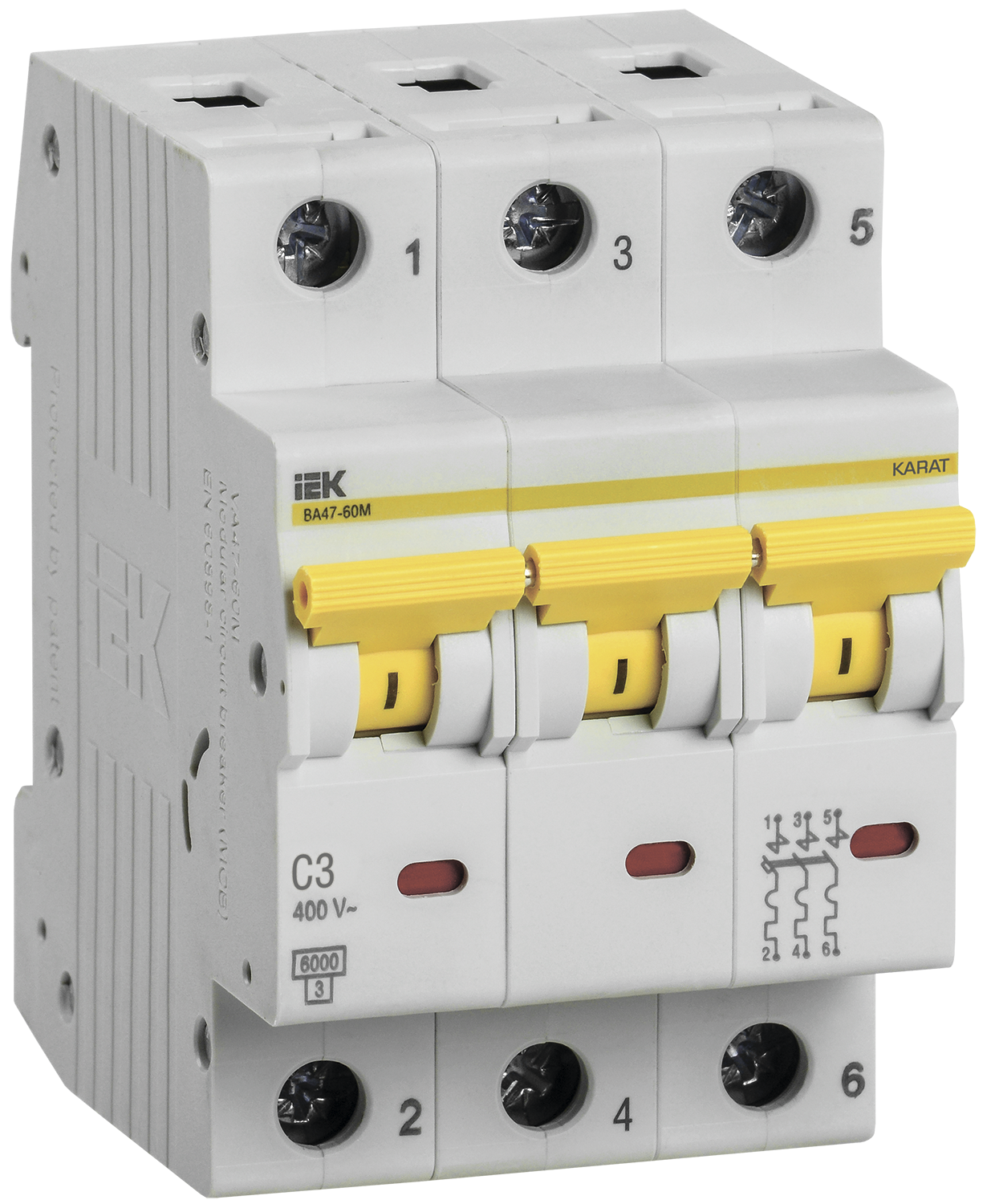 Наименование: KARAT Автоматический выключатель ВА47-60M 3P C 3А 6кА IEK