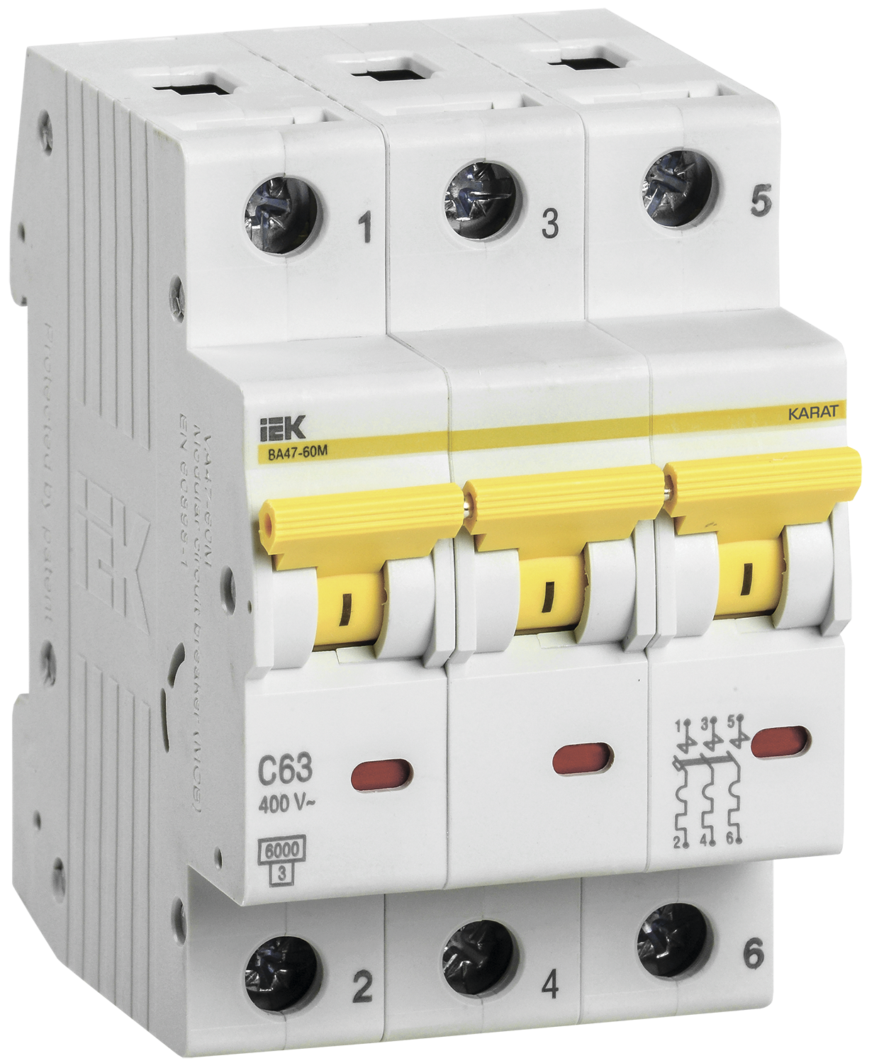 Наименование: KARAT Автоматический выключатель ВА47-60M 3P C 63А 6кА IEK