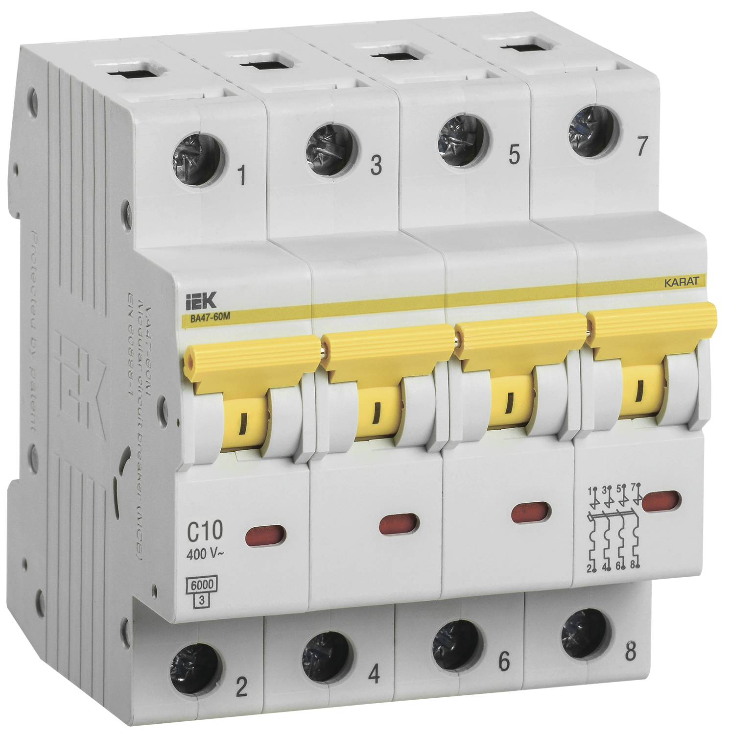 Наименование: KARAT Автоматический выключатель ВА47-60M 4P C 10А 6кА IEK