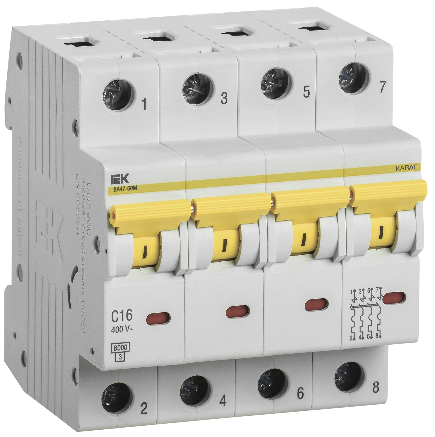 Наименование: KARAT Автоматический выключатель ВА47-60M 4P C 16А 6кА IEK