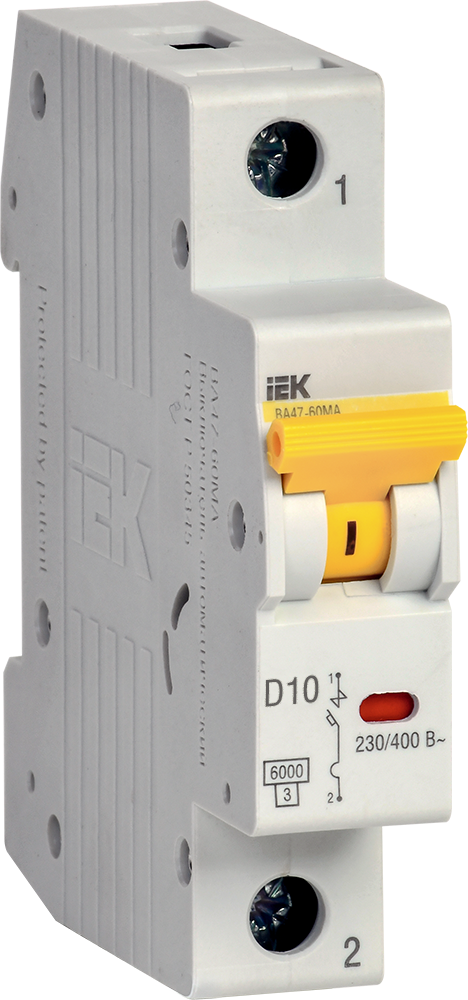 Наименование: Выключатель автоматический ВА47-60МА без теплового расцепителя 1P 10А 6кА D IEK