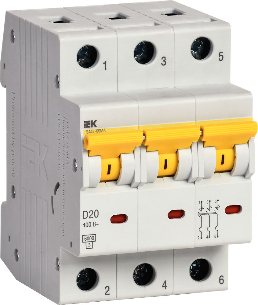 Наименование: Выключатель автоматический ВА47-60МА без теплового расцепителя 3P 20А 6кА D IEK