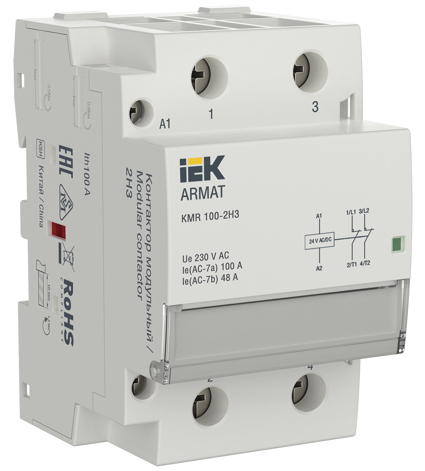 Наименование: ARMAT Контактор модульный KMR 100А 24В AC/DC 2НЗ IEK