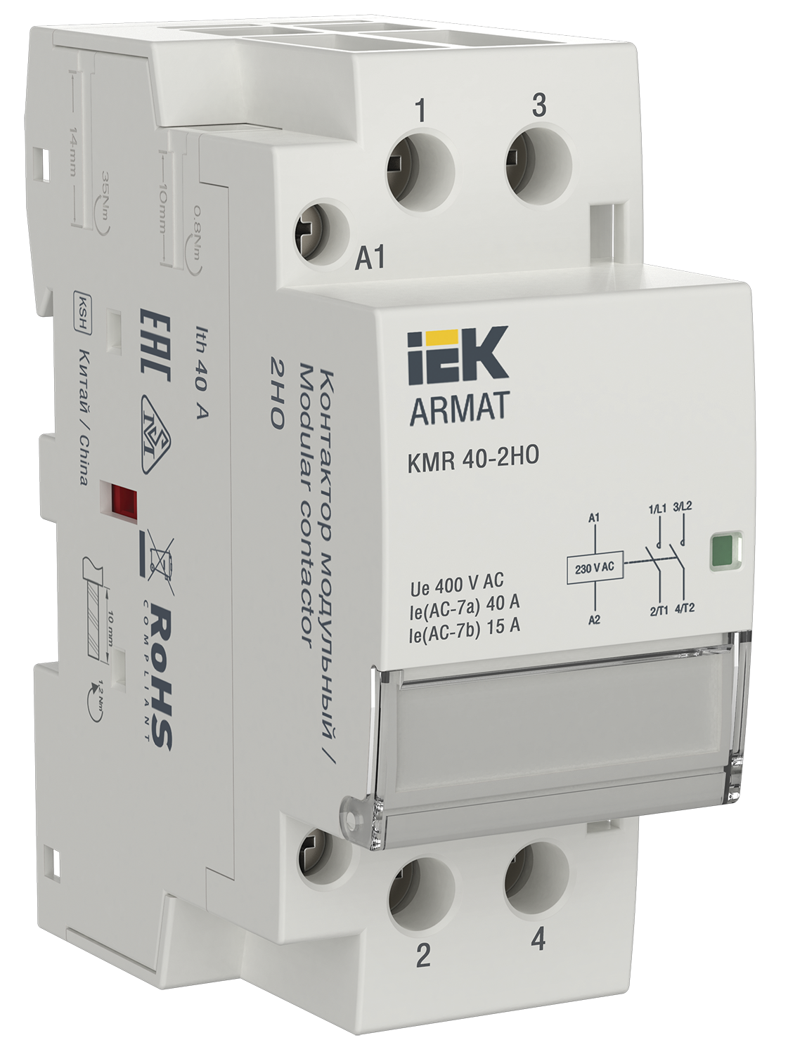Наименование: ARMAT Контактор модульный KMR 40А 230В AC 2НО IEK