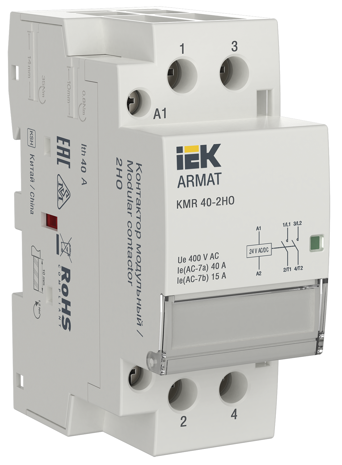 Наименование: ARMAT Контактор модульный KMR 40А 24В AC/DC 2НО IEK