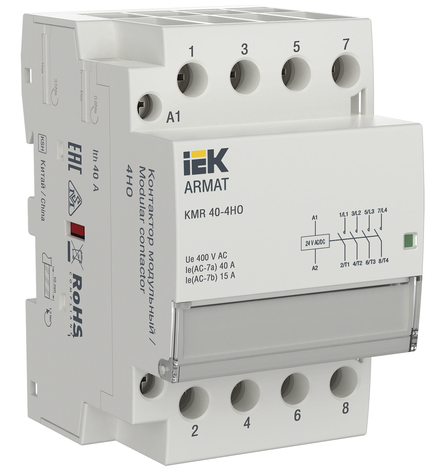 Наименование: ARMAT Контактор модульный KMR 40А 24В AC/DC 4НО IEK
