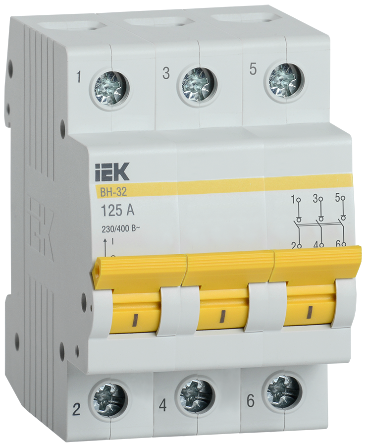 Наименование: Выключатель нагрузки (мини-рубильник) ВН-32 3Р 125А IEK