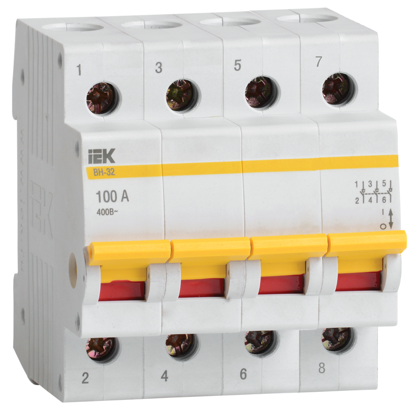 Наименование: Выключатель нагрузки (мини-рубильник) ВН-32 4Р 100А IEK