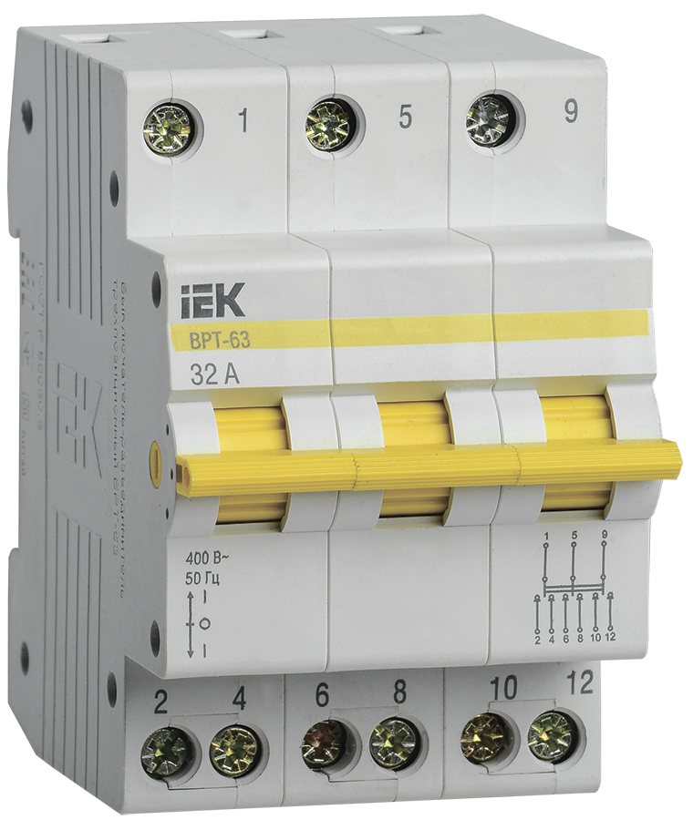 Наименование: Выключатель-разъединитель трехпозиционный ВРТ-63 3P 32А IEK