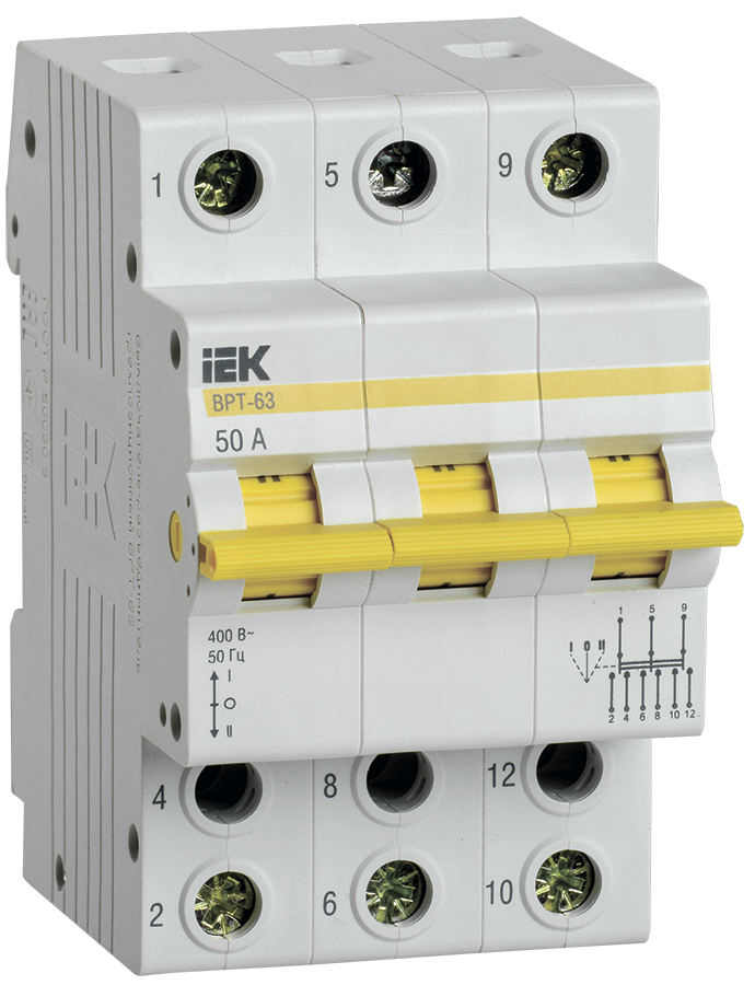 Наименование: Выключатель-разъединитель трехпозиционный ВРТ-63 3P 50А IEK