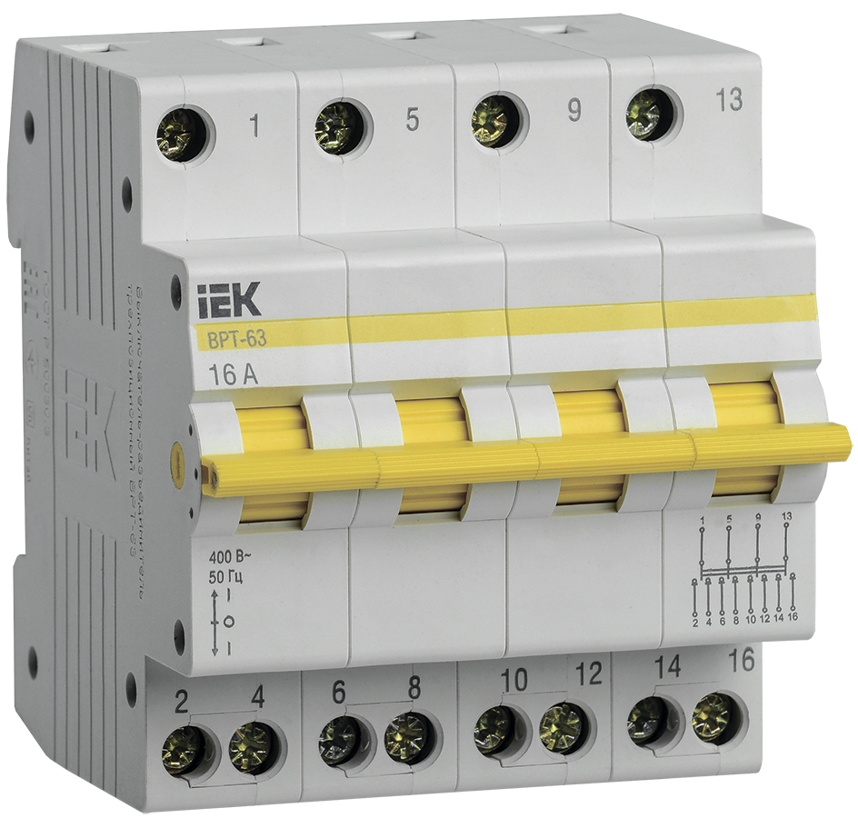 Наименование: Выключатель-разъединитель трехпозиционный ВРТ-63 4P 16А IEK