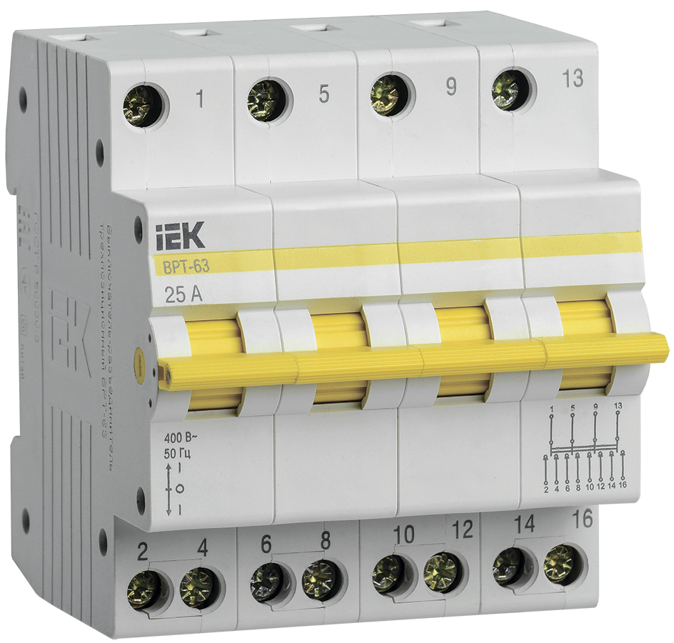 Наименование: Выключатель-разъединитель трехпозиционный ВРТ-63 4P 25А IEK