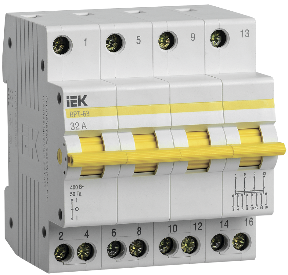 Наименование: Выключатель-разъединитель трехпозиционный ВРТ-63 4P 32А IEK