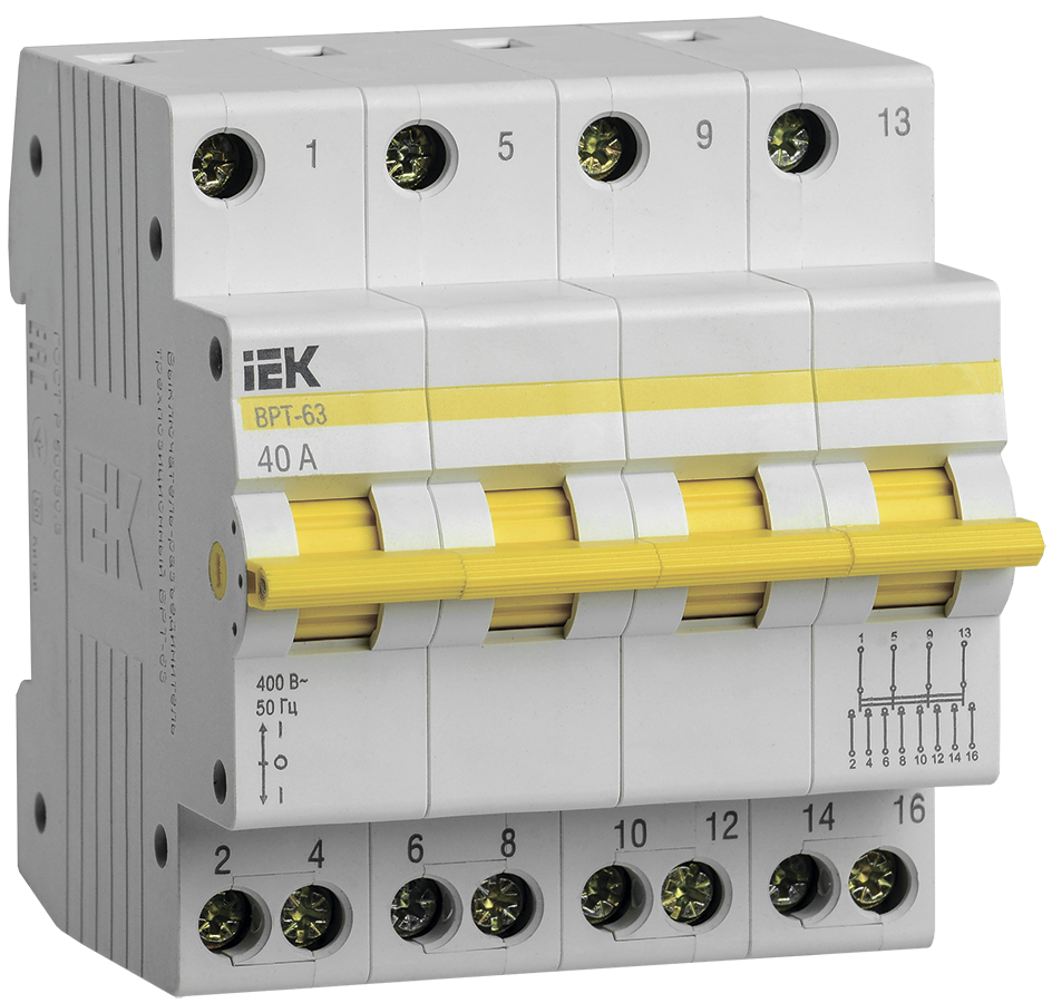 Наименование: Выключатель-разъединитель трехпозиционный ВРТ-63 4P 40А IEK