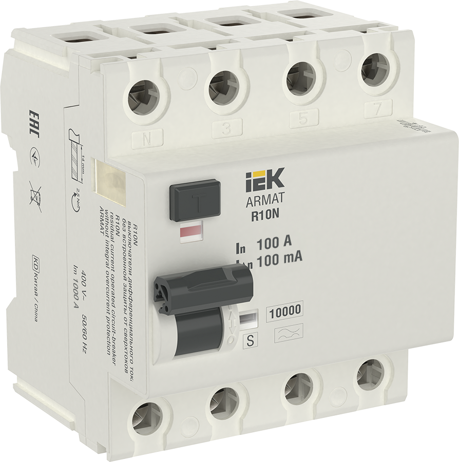 Наименование: ARMAT Выключатель дифференциального тока R10N 4P 100А 100мА тип A-S IEK