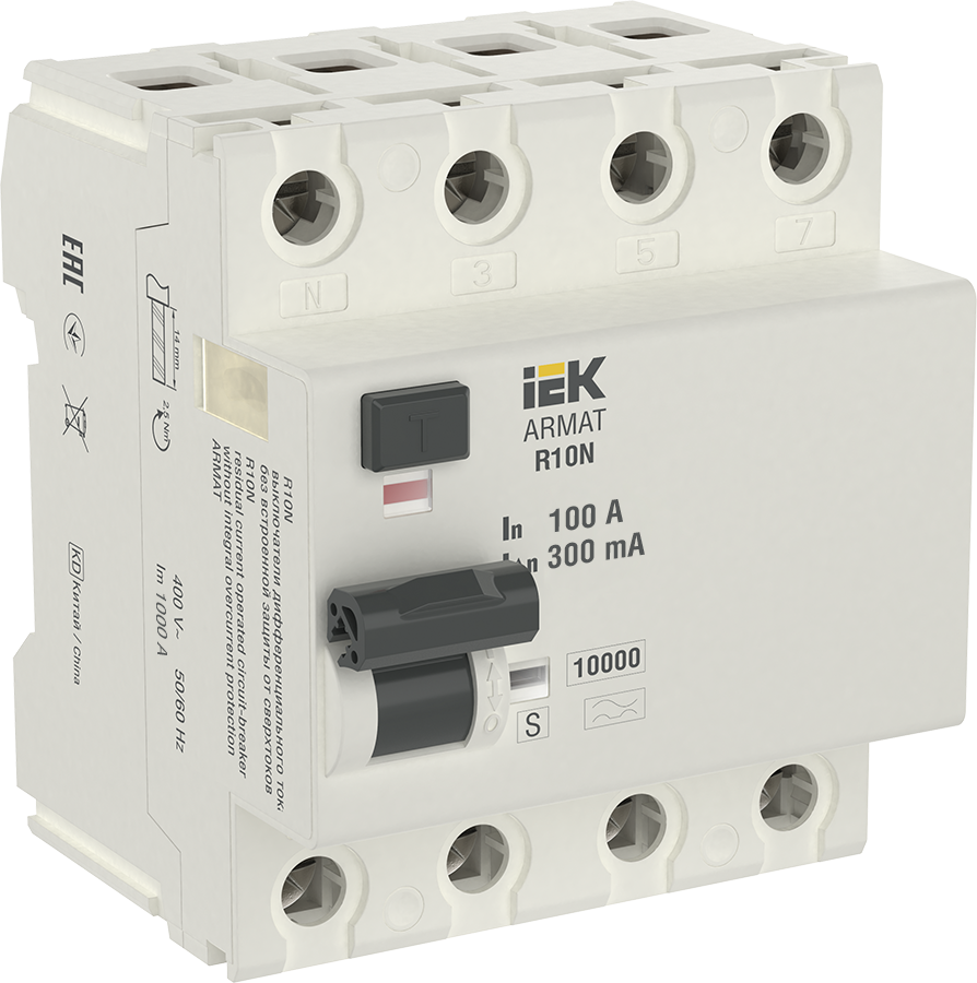 Наименование: ARMAT Выключатель дифференциального тока R10N 4P 100А 300мА тип AC IEK