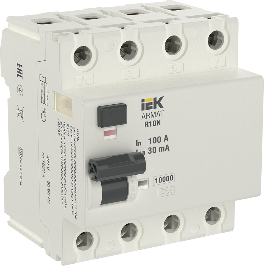 Наименование: ARMAT Выключатель дифференциального тока R10N 4P 100А 30мА тип AC IEK