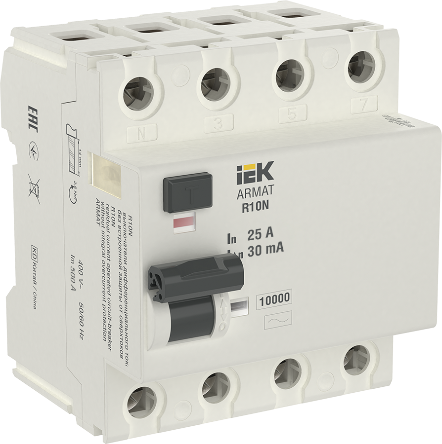 Наименование: ARMAT Выключатель дифференциального тока R10N 4P 25А 30мА тип AC IEK